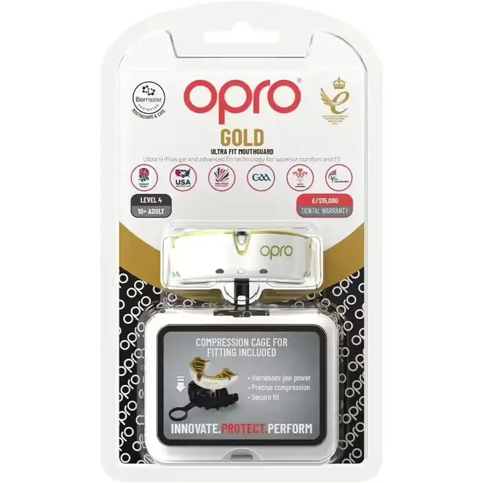 Капа OPRO Gold взрослая (возраст 11+) White/Gold (art.102504005)
